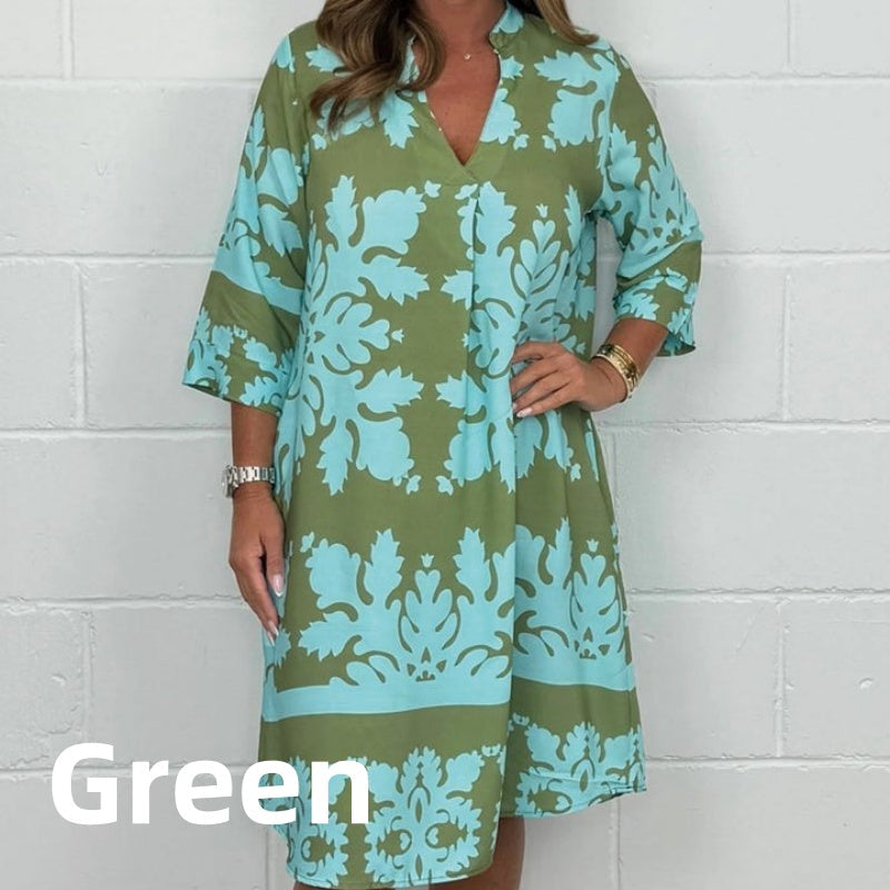 💗 Modna damska sukienka z dekoltem w kształcie litery V i rękawami 3/4