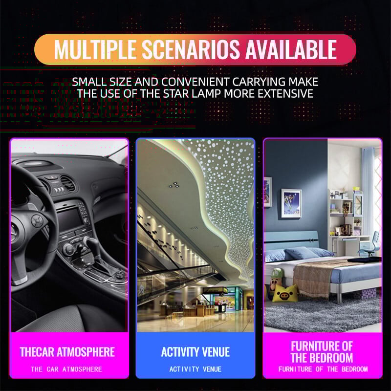 - Romantyczna i interesująca - lampka nocna z gwiazdą może stworzyć romantyczną atmosferę z efektem gwiezdnym na suficie pokoju lub dachu samochodu, co jest bardzo interesujące i może natychmiast rozświetlić atmosferę.car roof, which is very interesting and can light up the atmosphere instantly.