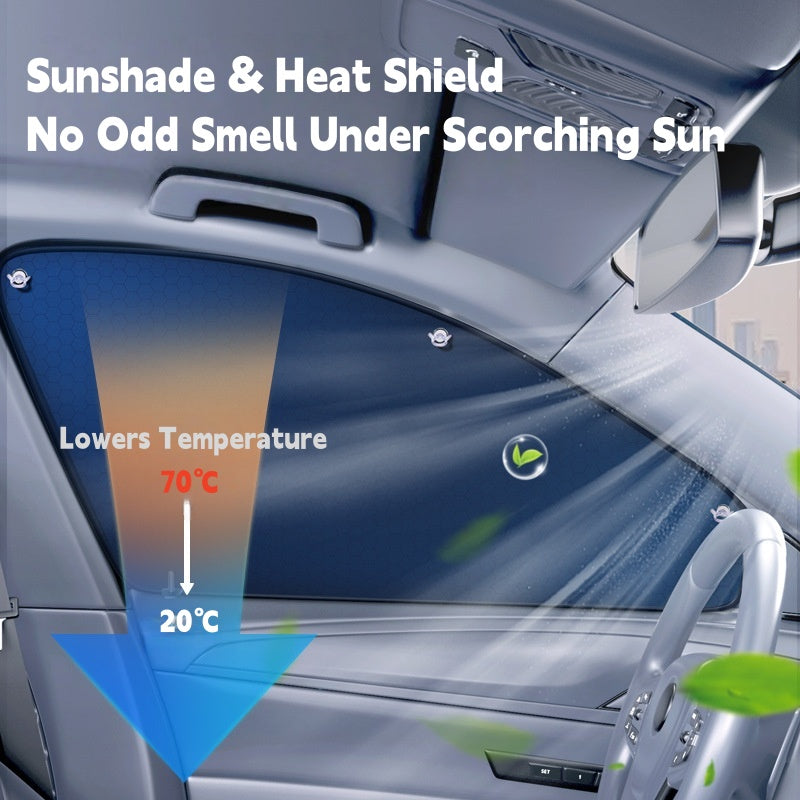 Dwuwarstwowy system ochrony przeciwsłonecznej i chłodzenia. Najpierw blokuje światło słoneczne, a następnie pochłania ciepło. Zapewnia odświeżające wrażenia z jazdy.