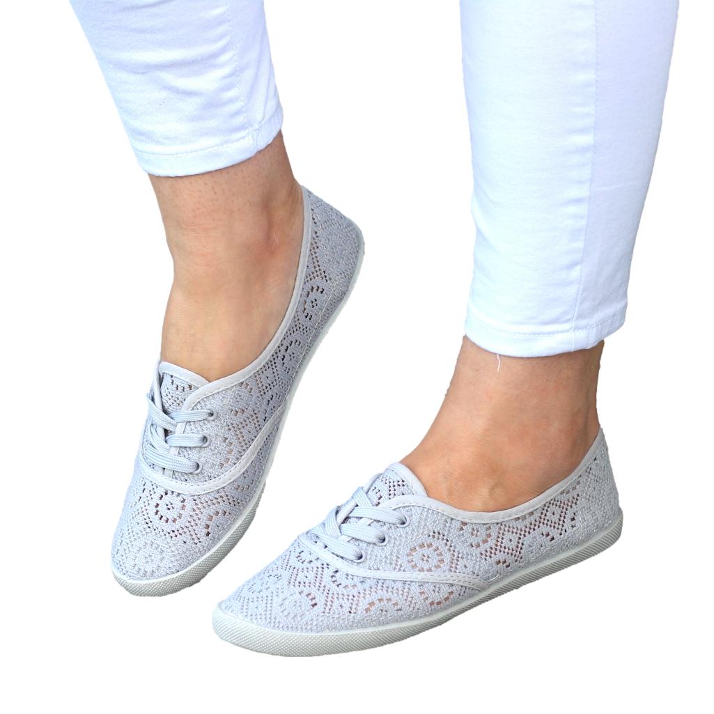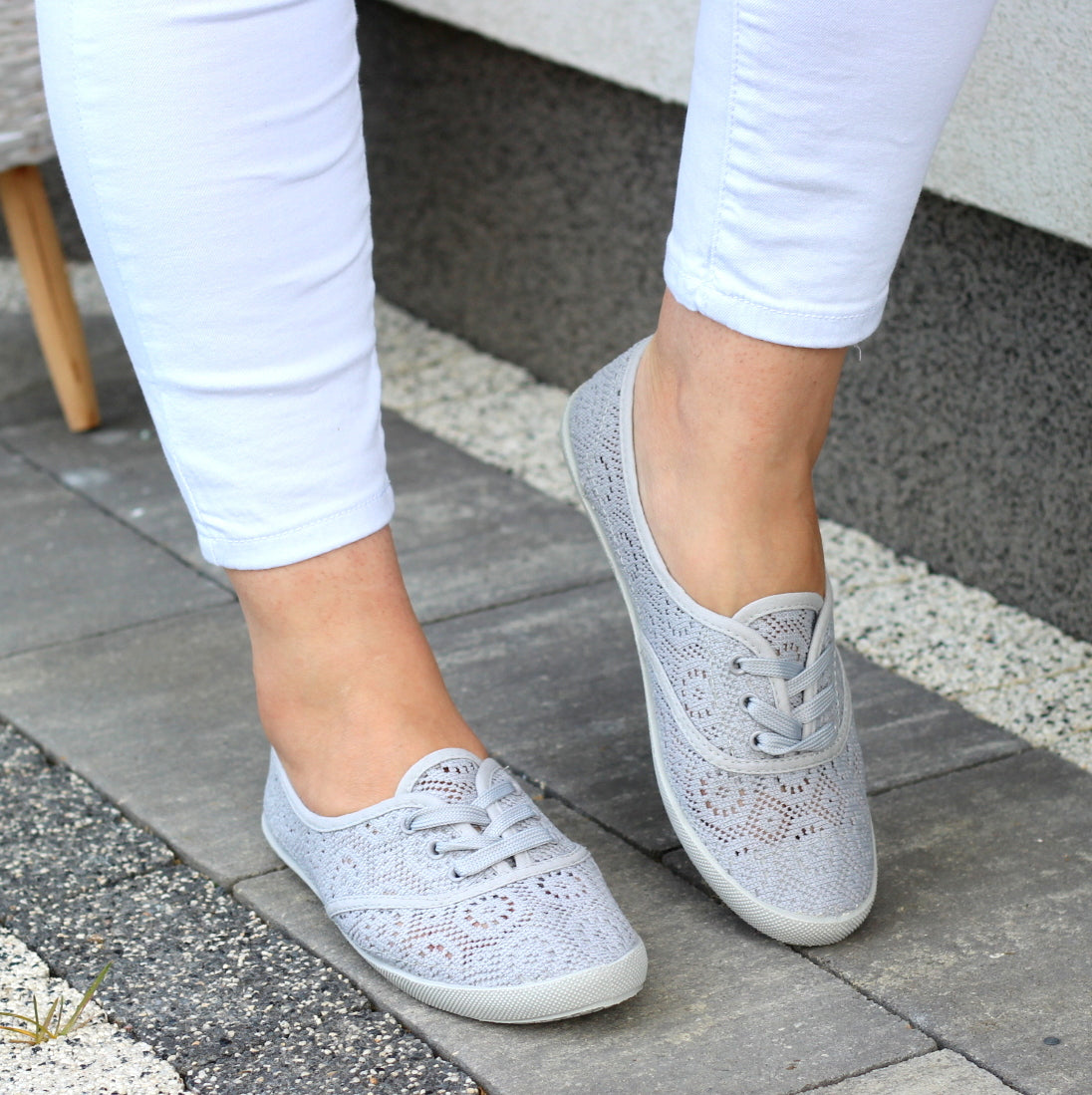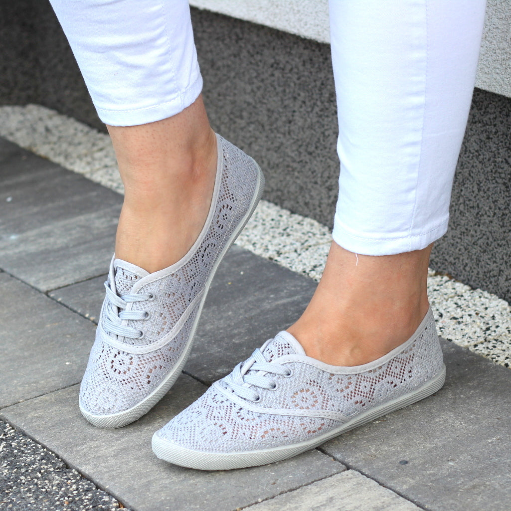 Szare mięciutkie tenisówki damskie wykonane z przewiewnej koronki