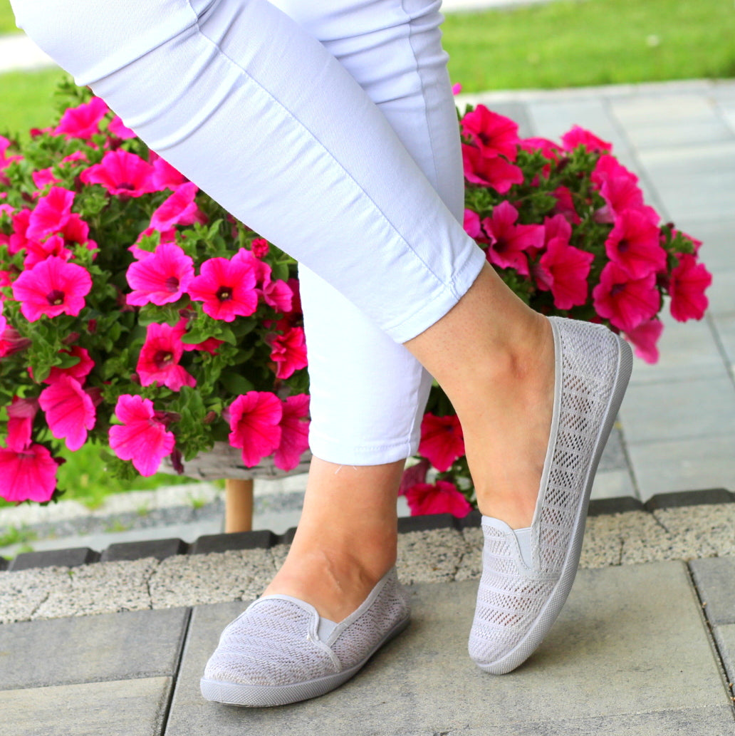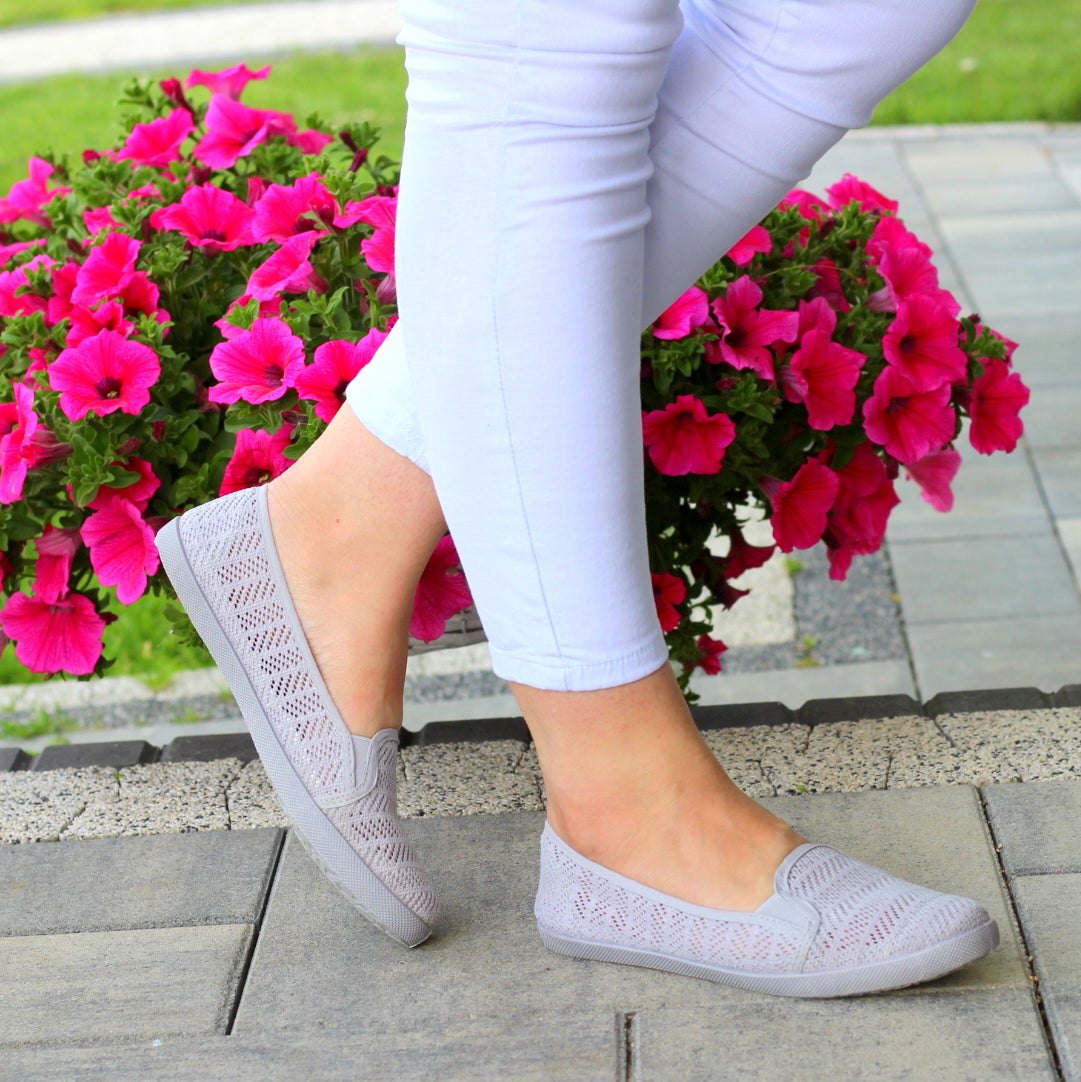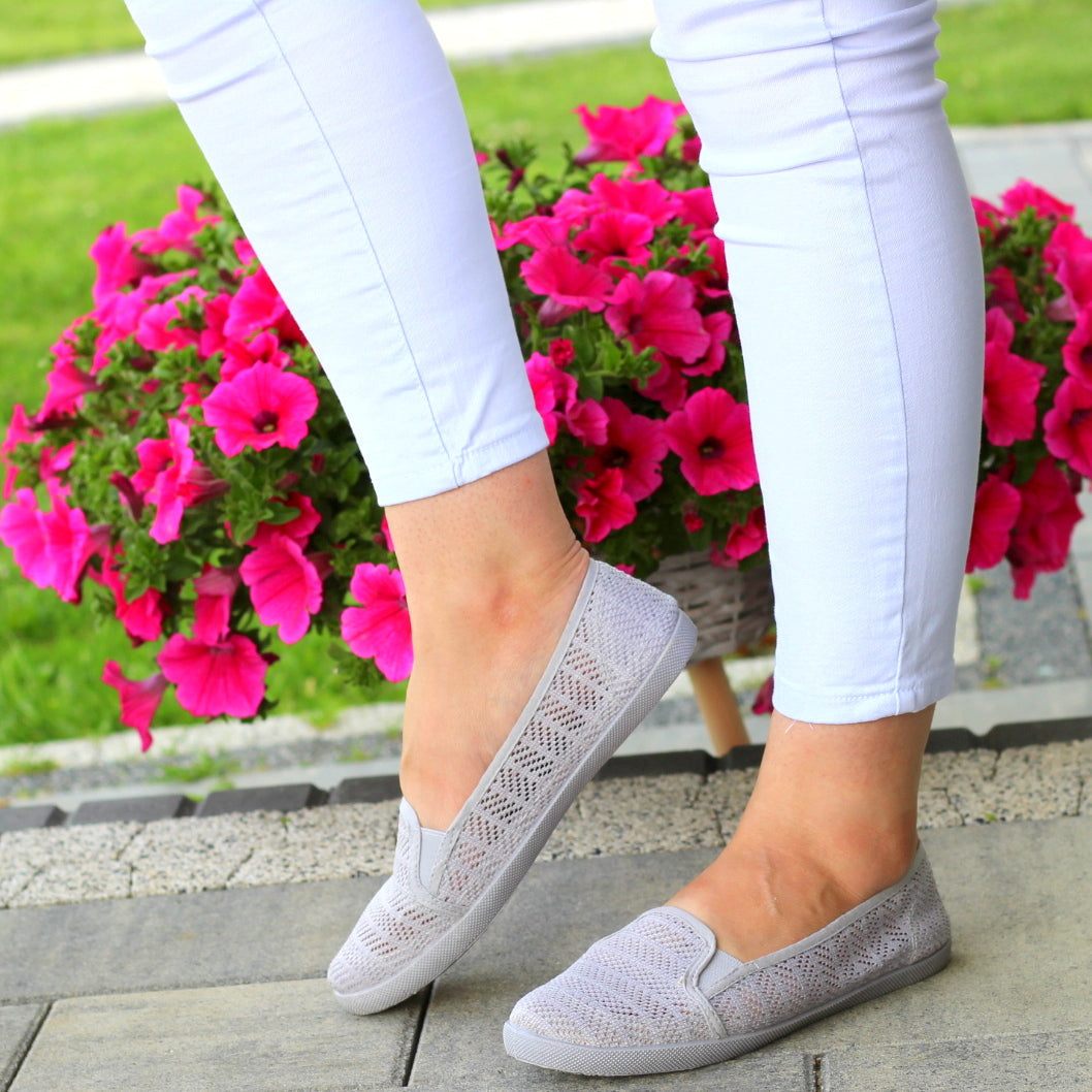 SZARE TENISÓWKI KORONKOWE NA LATO