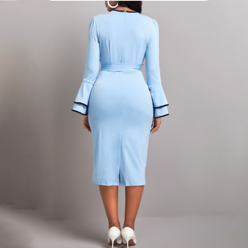 Taliowana jasnoniebieska sukienka