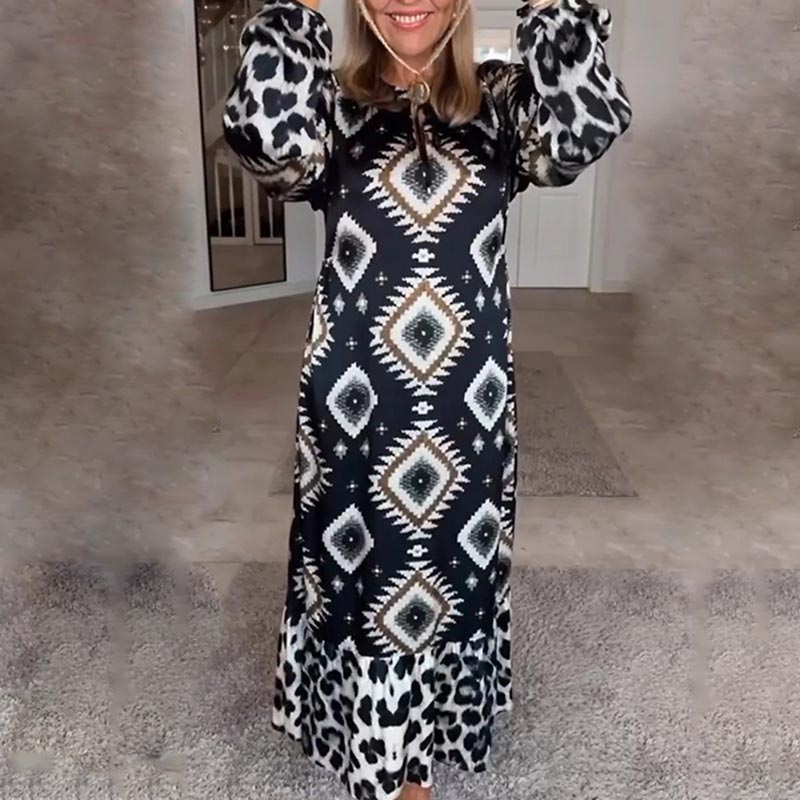 Pakiet zawiera: 1 * Damska sukienka z długim rękawem w stylu artystycznym, z nadrukiem