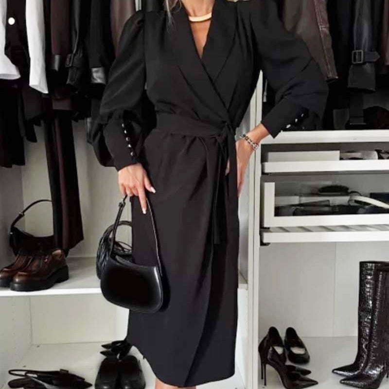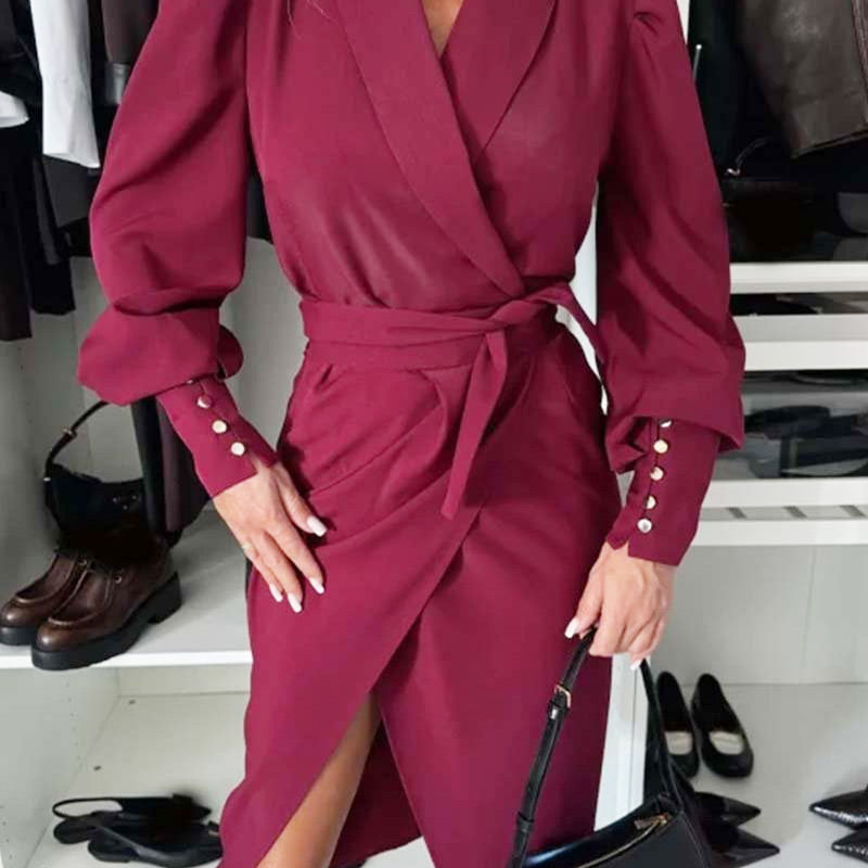 Pakiet zawiera:1 * Damska sukienka z długim rękawem z dekoltem w szpic z wiązaniem w talii