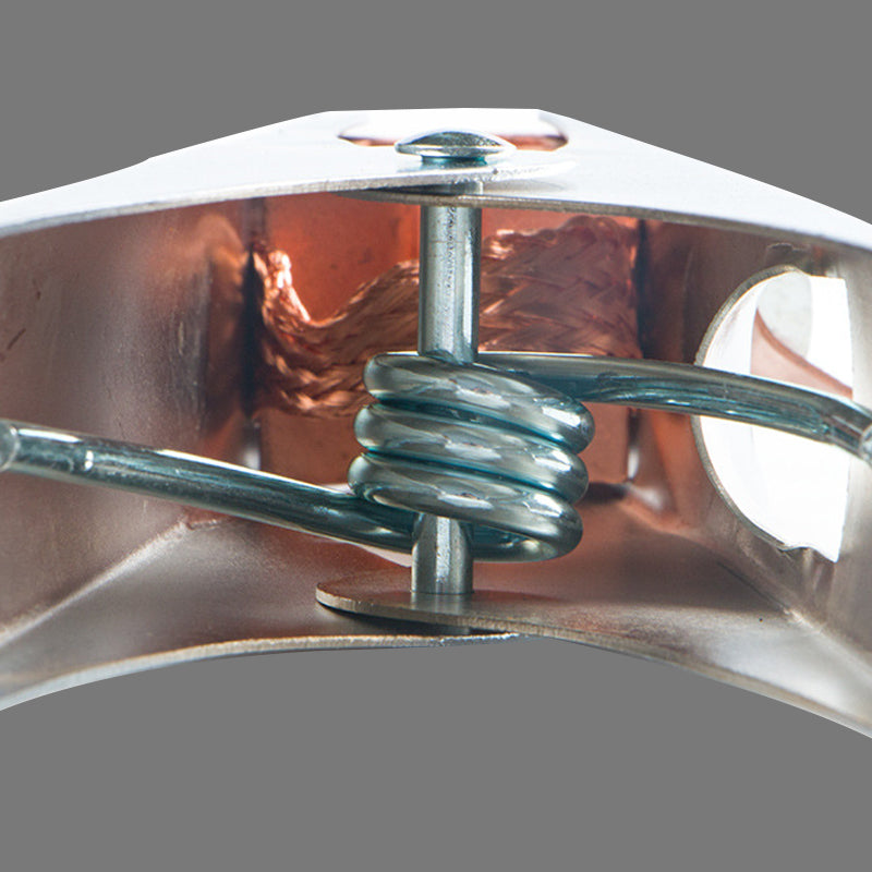 Niklowana powierzchnia zapewniająca długą żywotność: Zacisk posiada niklowaną powierzchnię odporną na utlenianie, co wydłuża żywotność produktu. Dzięki tej powłoce ochronnej zacisk zachowuje swoją funkcjonalność i niezawodność nawet w trudnych warunkach spawalniczych.
