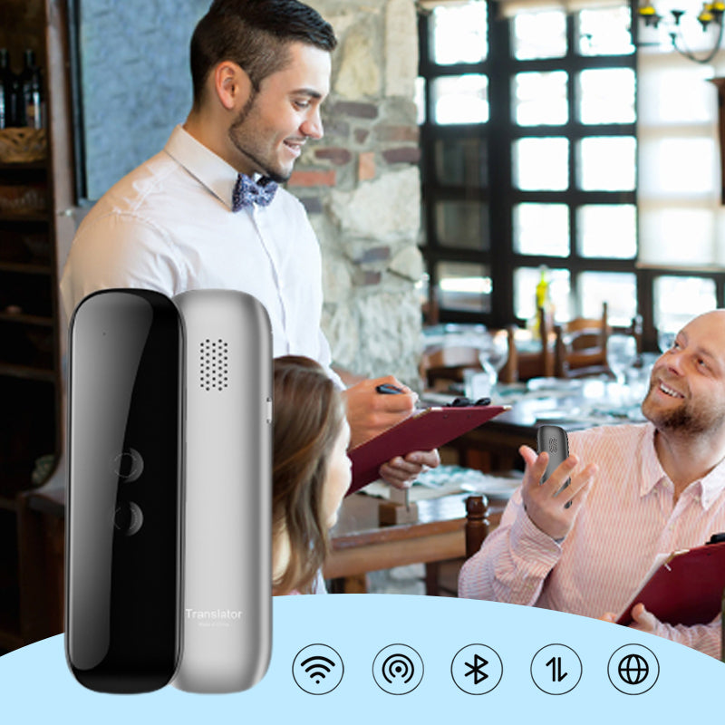Obsługa Bluetooth 4.2: zainstaluj aplikację urządzenia na swoim telefonie (kompatybilną z IOS i Androidem), następnie podłącz urządzenie do systemu Bluetooth 4.2 w telefonie, aby rozpocząć tłumaczenie w czasie rzeczywistym. W aplikacji możesz znaleźć dużą liczbę użytkowników, pokonać bariery językowe i zaprzyjaźnić się z nimi.