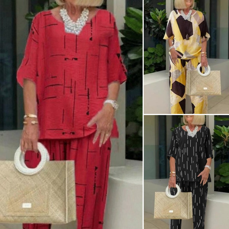 Pakiet zawiera: 1*Modny damski luźny top z półrękawkiem & Spodnie dwuczęściowe