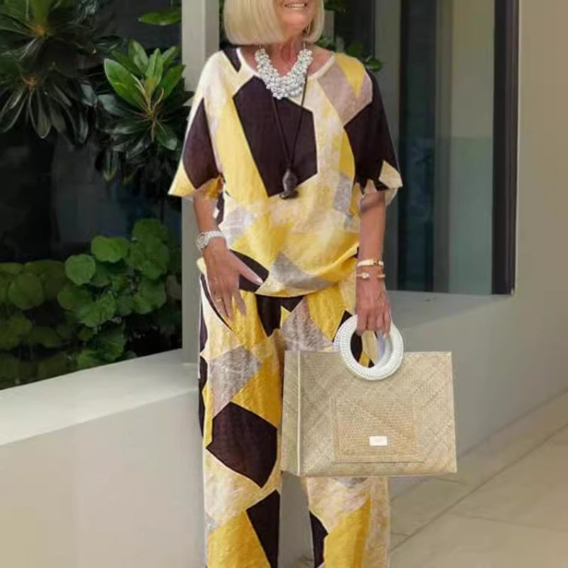 Damski luźny dwuczęściowy zestaw bluzka z półrękawkiem i spodnie