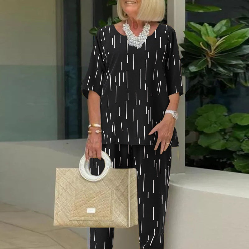 MODNY I STYLOWY DESIGN: Ten dwuczęściowy zestaw zawiera luźną bluzkę z półrękawkiem i dopasowane spodnie, zapewniając nowoczesny i stylowy wygląd na każdą okazję.