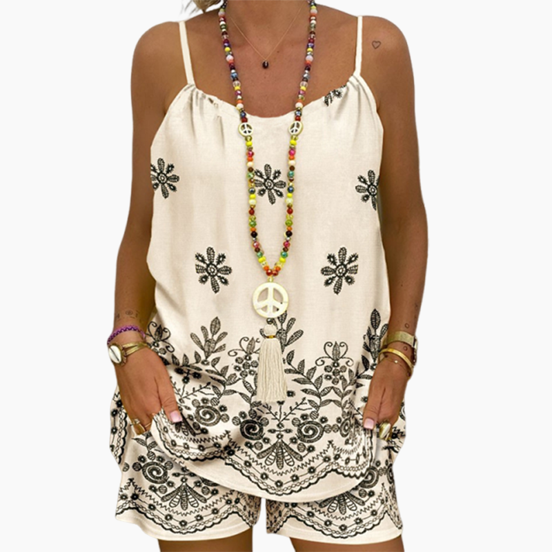 Opakowanie zawiera 1* damski top i szorty z nadrukiem na ramiączkach.