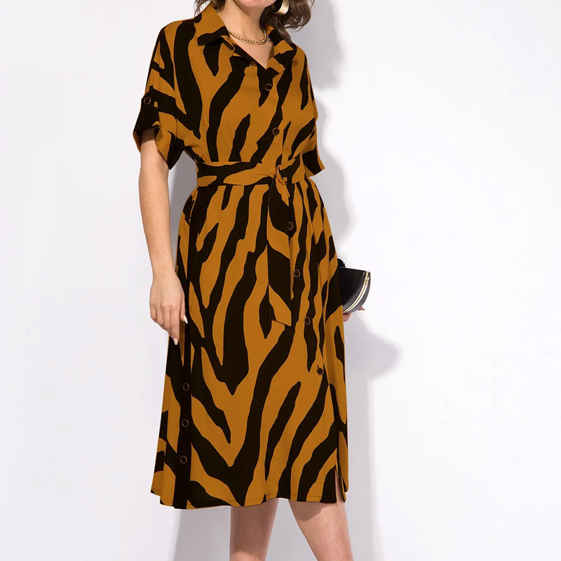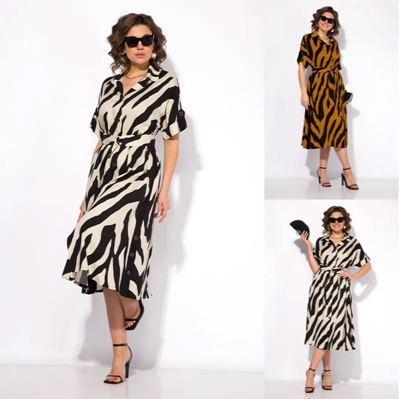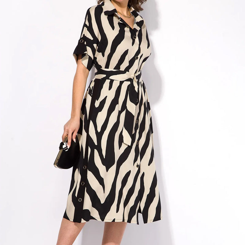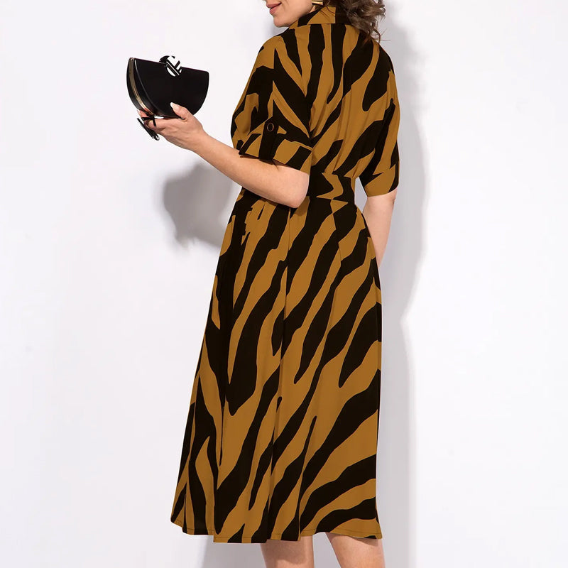 ✨🦓Sukienka z dekoltem w serek, nadrukowanymi paskami i talią