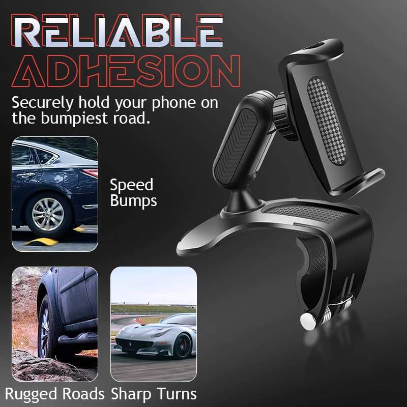 Ten uchwyt na telefon posiada mocny, antypoślizgowy klips, dzięki któremu bezpiecznie przymocujesz swoje urządzenie do deski rozdzielczej, osłony przeciwsłonecznej, a nawet przedniego lusterka.